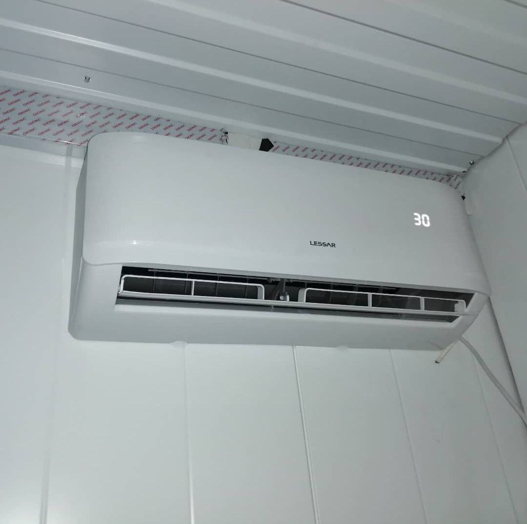 Установлено: Поставка и монтаж настенной сплит-системы Lessar для модульного контейнера, в котором будет находиться система очистки воды.