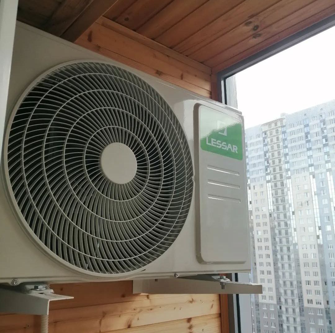 Установлено: Монтаж настенной сплит-системы Lessar с размещением наружного блока на лоджии.