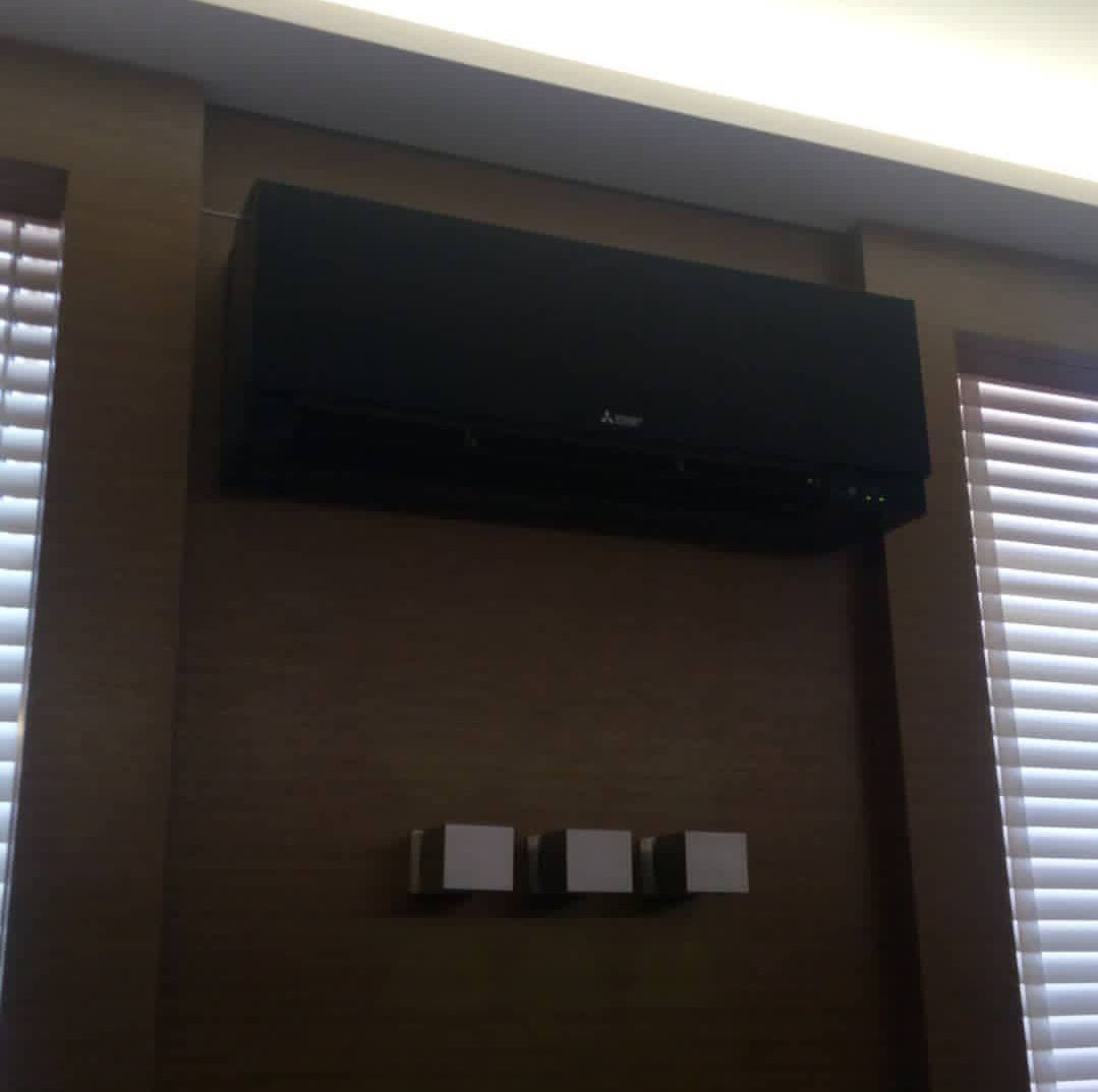 Установлено: Настенная сплит-система Mitsubishi Electric чëрного цвета отлично вписалась в дизайн кабинета.