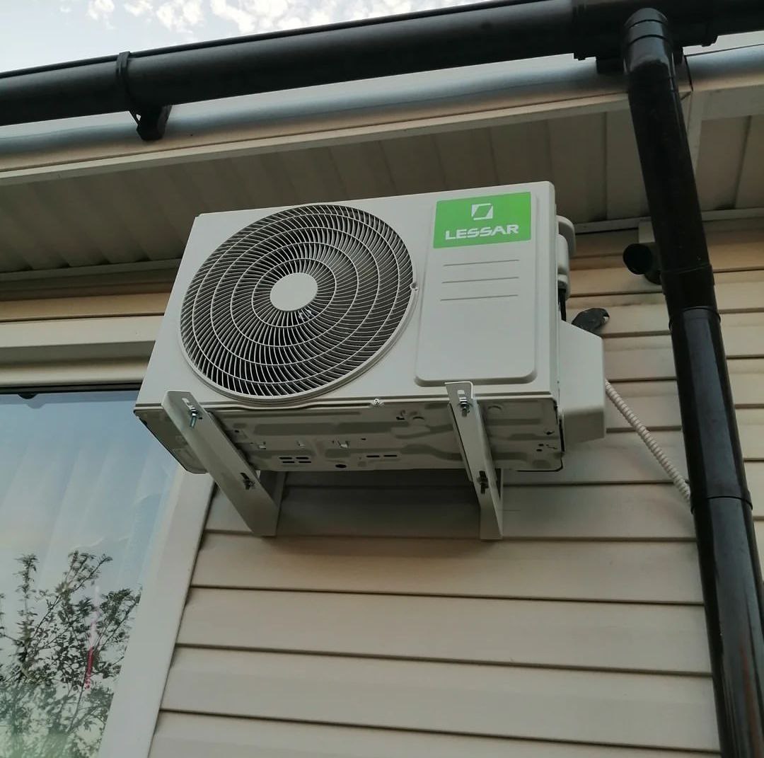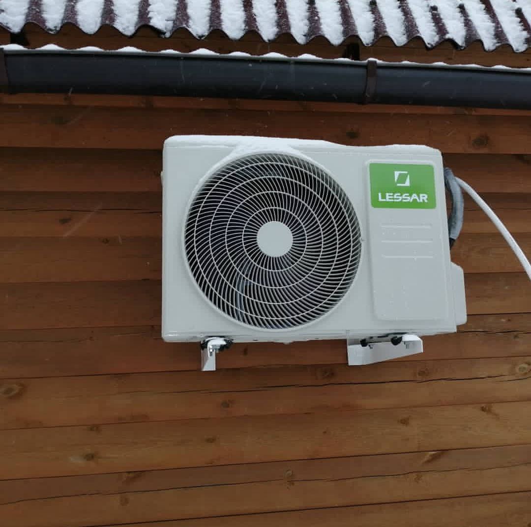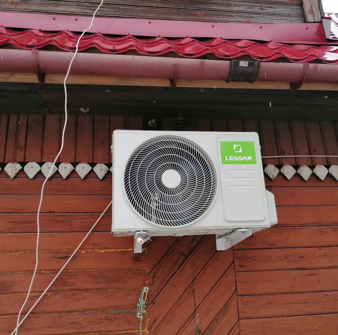 Установлено: Установка инверторной сплит-системы Lessar для обогрева и охлаждения комнаты в загородном доме. В поддоне наружного блока был дополнительно проложен греющий кабель для предотвращения образования наледи.
